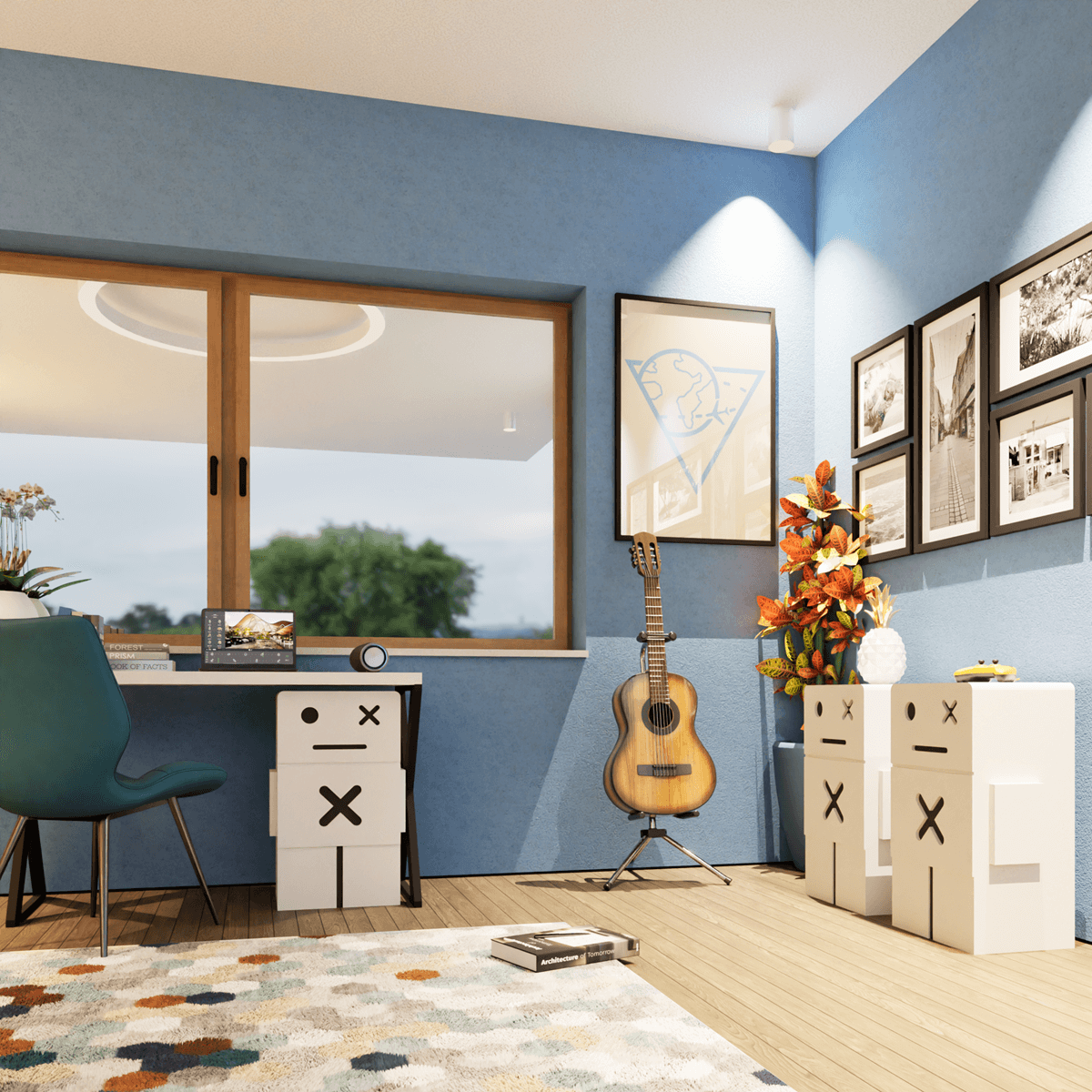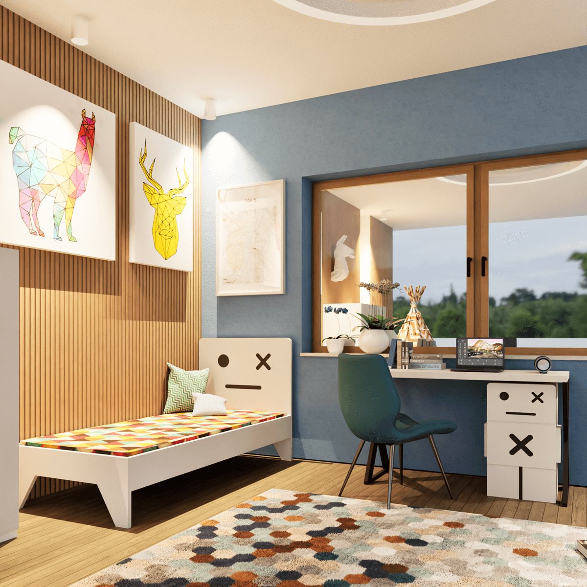 Kiedy dziecko otwiera szafę albo siada do biurka, witają go proste, naturalne meble, na których pojawia się sympatyczny robot. Niby tylko motyw graficzny, a jednak... wywołuje uśmiech, dodaje odwagi i sprawia, że codzienność staje się ciekawsza. Ten robot to nie tylko ozdoba –towarzyszy w zabawie, „pilnuje” sekretów w szufladach i stoi na straży dobrej energii w pokoju.